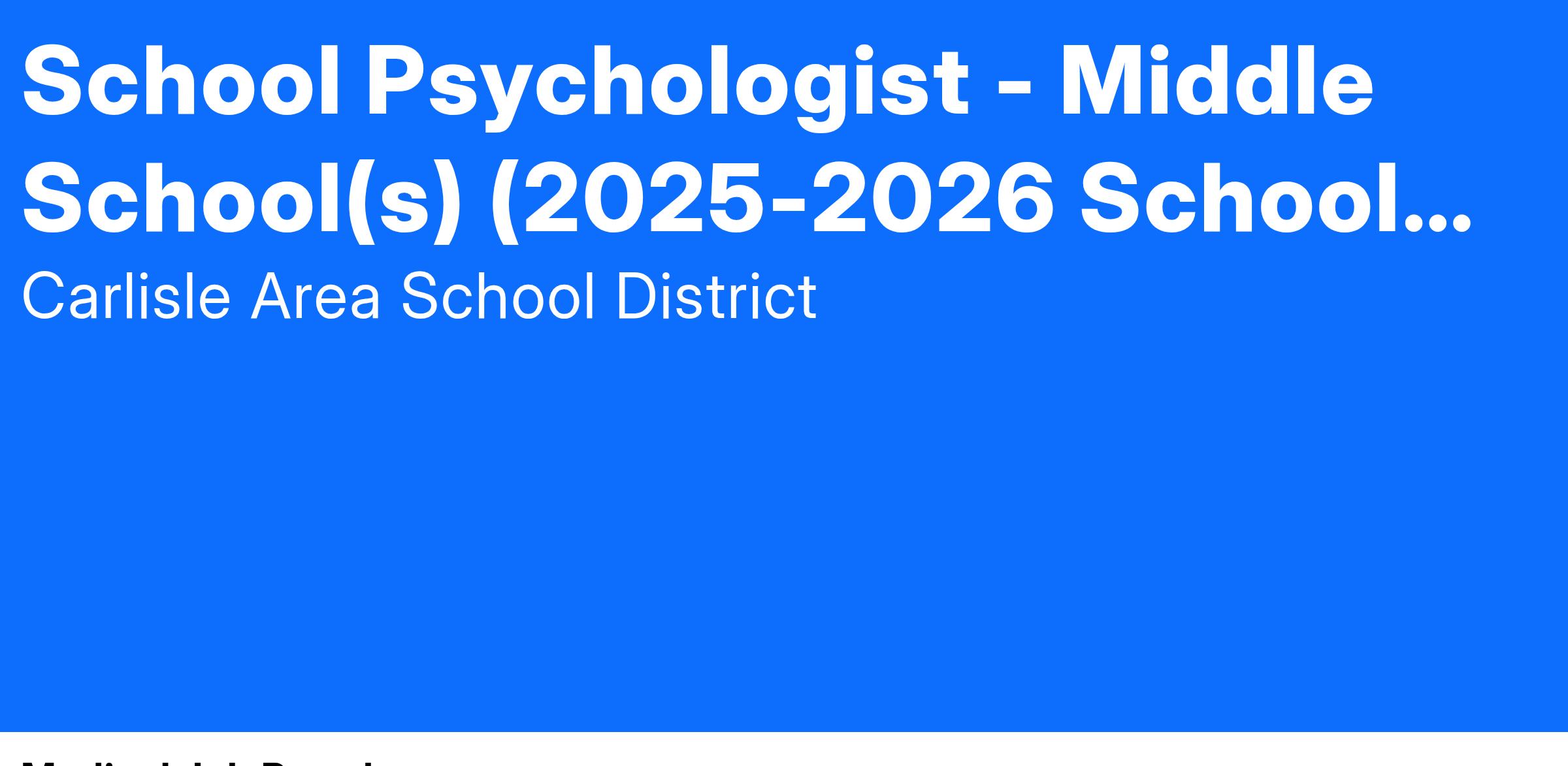 POSITION: School Psychologist - Middle School(s) (2025-206 School Year)