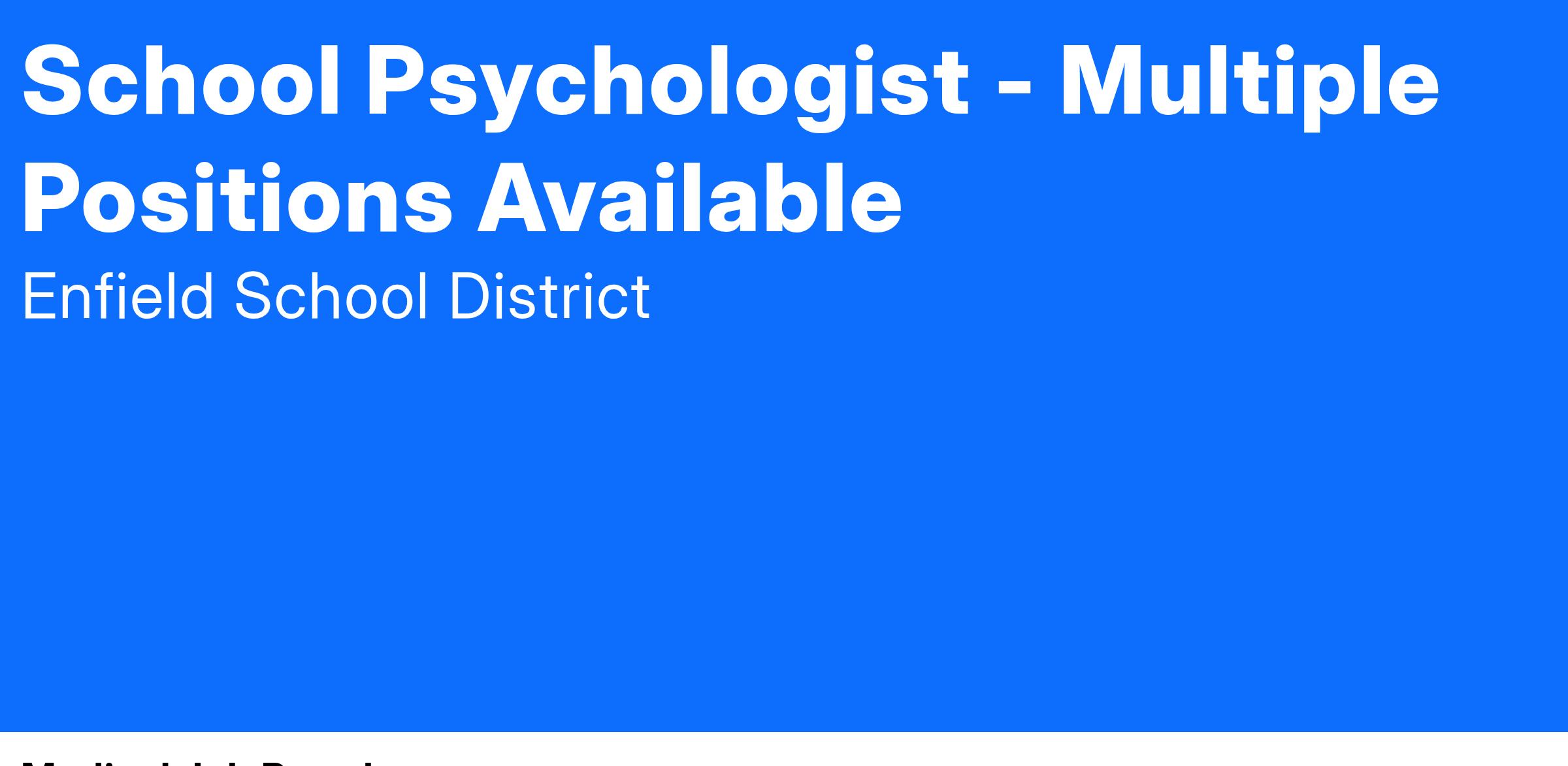 Job Summary: Enfield Public Schools is seeking a dedicated and compassionate School Psychologist to join our team. The School Psychologist will provide comprehensive psychological services to students, helping them achieve their full potential in academic, social, and emotional development.