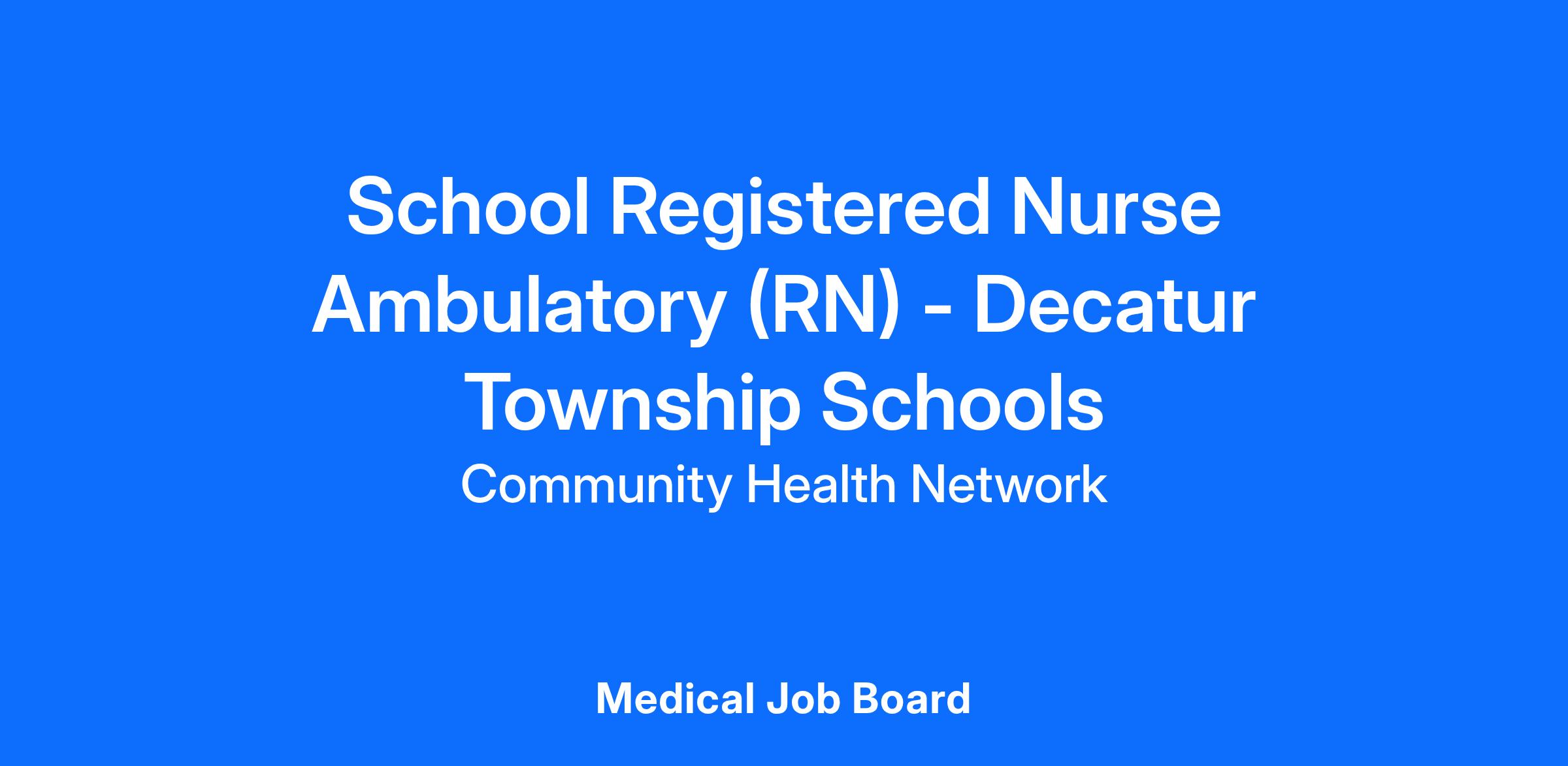 The School Registered Nurse Ambulatory provides health services to facilitate optimal physical, mental, emotional and social growth and development for students within the schools. Cares for students with chronic health issues and helps identify health needs during the course of the school day. Provides health education, medication management, emotional support and referral to higher levels of care based on student needs. Supports the education process by working to assure the health of the students. Promotes healthy habits and overall health to strengthen maximum learning. The school nurse position is located on the west side of Indianapolis, Indiana with Decatur Township Schools. The school nurse will support Stephen Decatur Elementary.