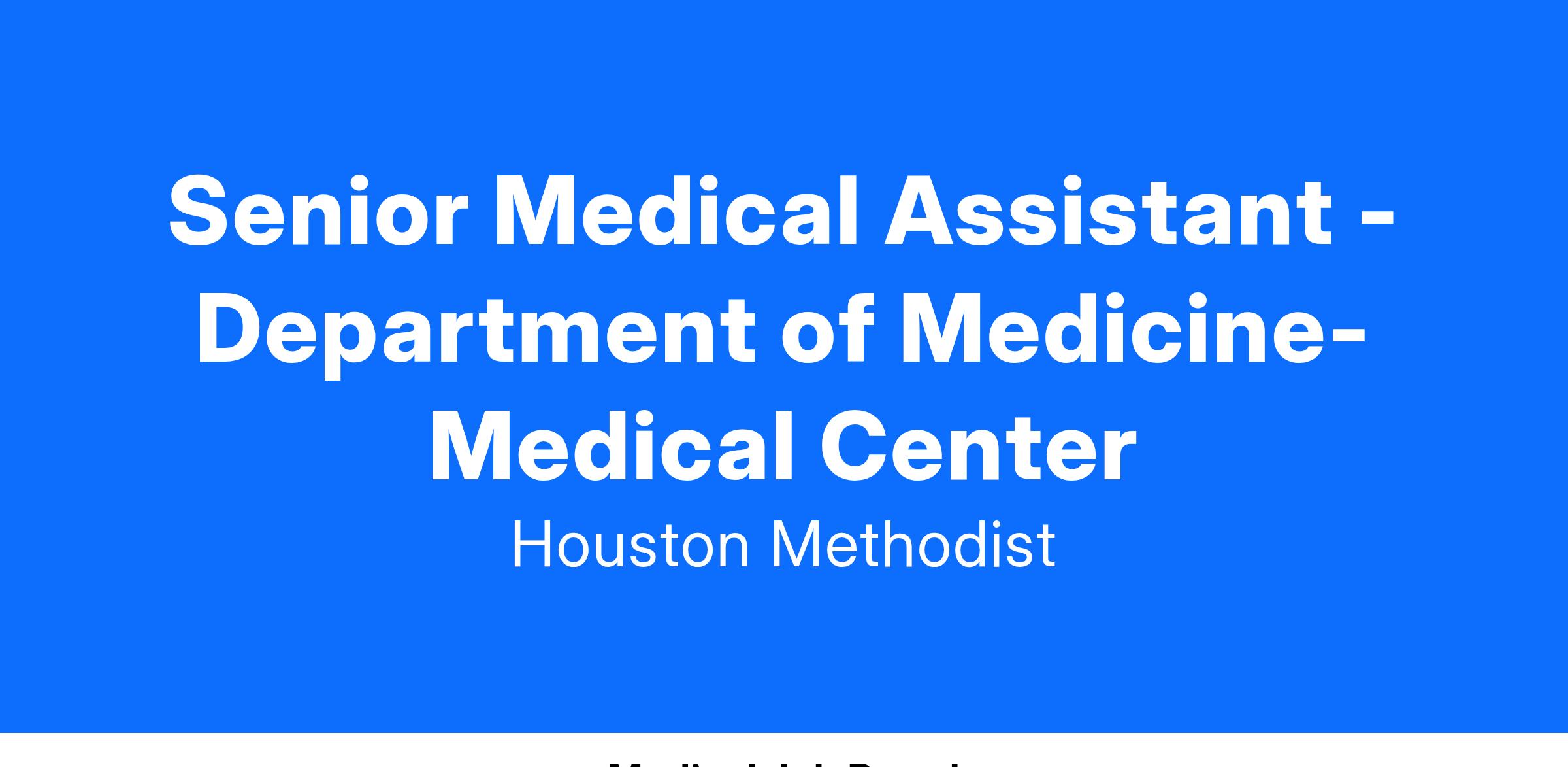 Senior Medical Assistant -Department of Medicine- Medical Center