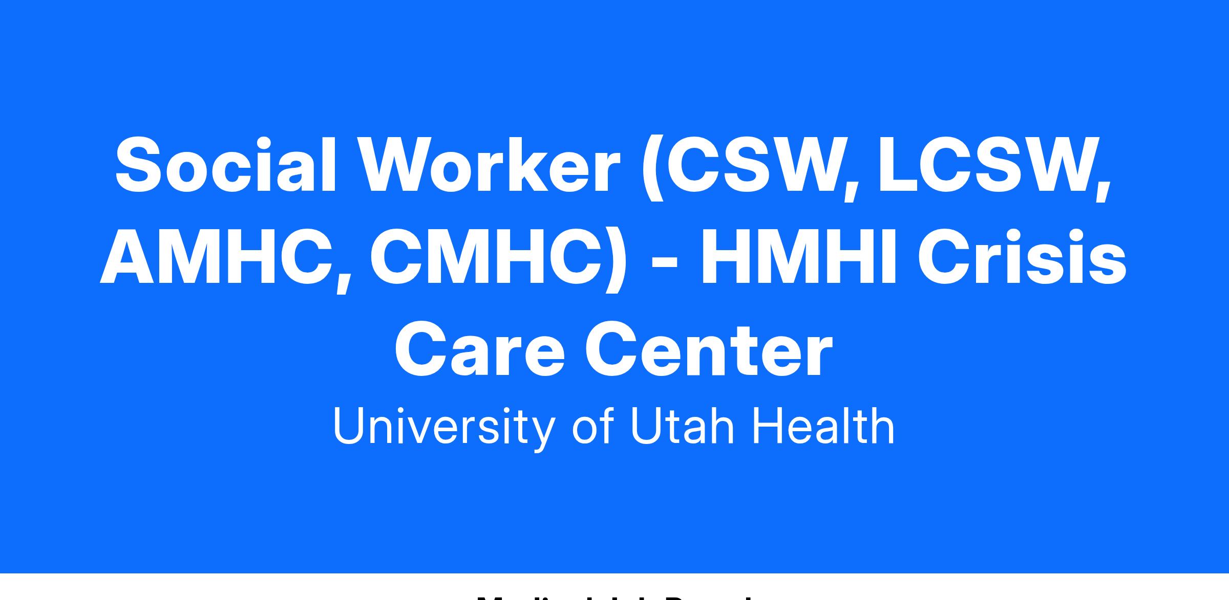 As a patient-focused organization, University of Utah Health exists to enhance the health and well-being of people through patient care, research and education. Success in this mission requires a culture of collaboration, excellence, leadership, and respect. University of Utah Health seeks staff that are committed to the values of compassion, collaboration, innovation, responsibility, diversity, integrity, quality and trust that are integral to our mission. EO/AA