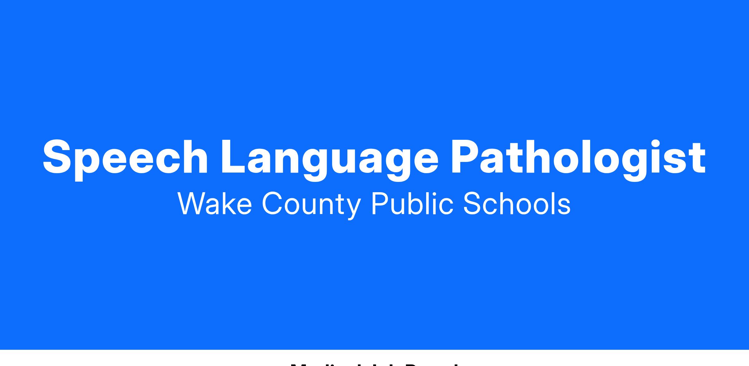 Serves as a critical member of the school team in supporting the speech/language/communication needs of students. Provides high quality specialized assessment and instruction, implementing Individual Educational Plans (IEP) to students with disabilities in the school setting. Maintains confidentiality and complies with all federal, state, and local laws, regulations, guidelines, and procedures as they relate to the special education program throughout the district. Provides protection against discrimination for individuals with disabilities and general education students as part of the Multi-Tiered System of Supports (MTSS) process. Ensures vision aligns with the mission, vision, and core beliefs of the Wake County School System (WCPSS) Strategic Plan.