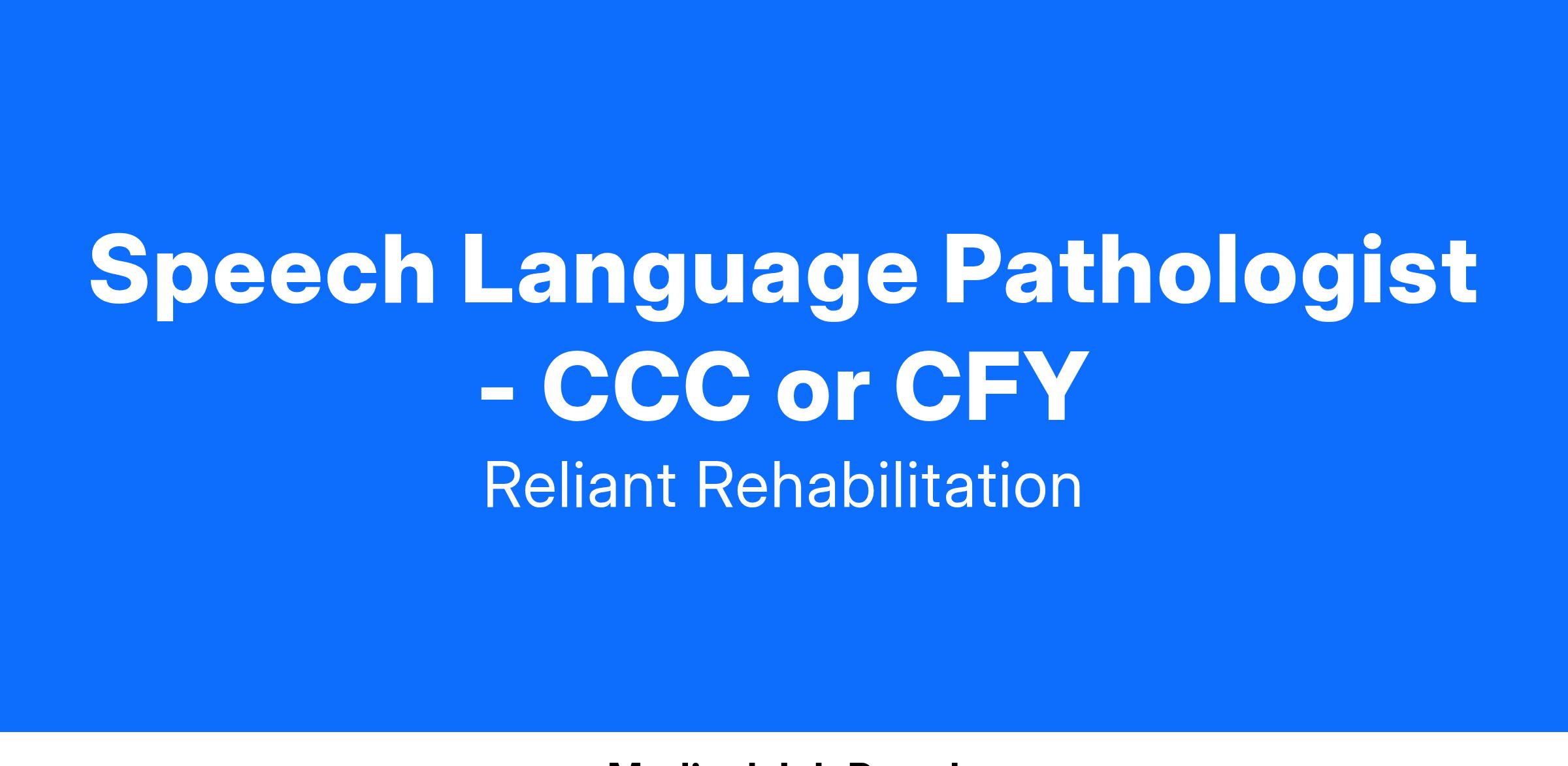 Provide Speech-Language Pathology (SLP) Therapy and related services for patients while maintaining positive levels of interaction with facilities and clients in accordance with the principles and practices of Speech-Language Pathology therapy and within Reliant Rehabilitation guidelines. Provide quality patient care including screening and evaluation of patients, development of initial and ongoing treatment plans of care, discharge plan, and case management responsibilities. Maintain professional conduct that represents Reliant Rehabilitation’s commitment to quality and service in all interactions with clients, including positive levels of interaction and rapport with facilities and clients. Adhere to all state and federal regulations regarding speech-language pathology therapy.