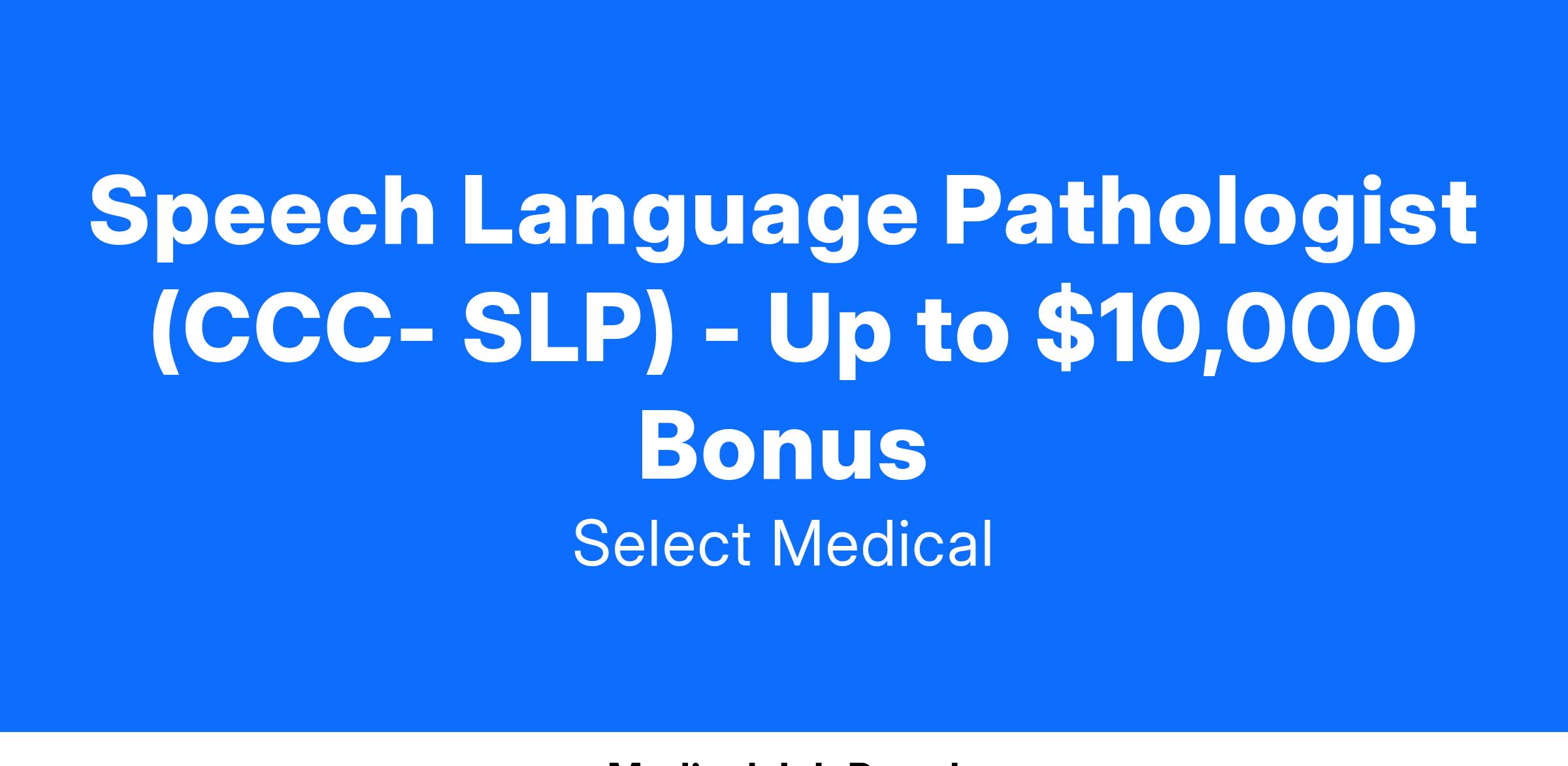 Position: Speech Language Pathologist (CCC - SLP) - Outpatient Pediatrics
