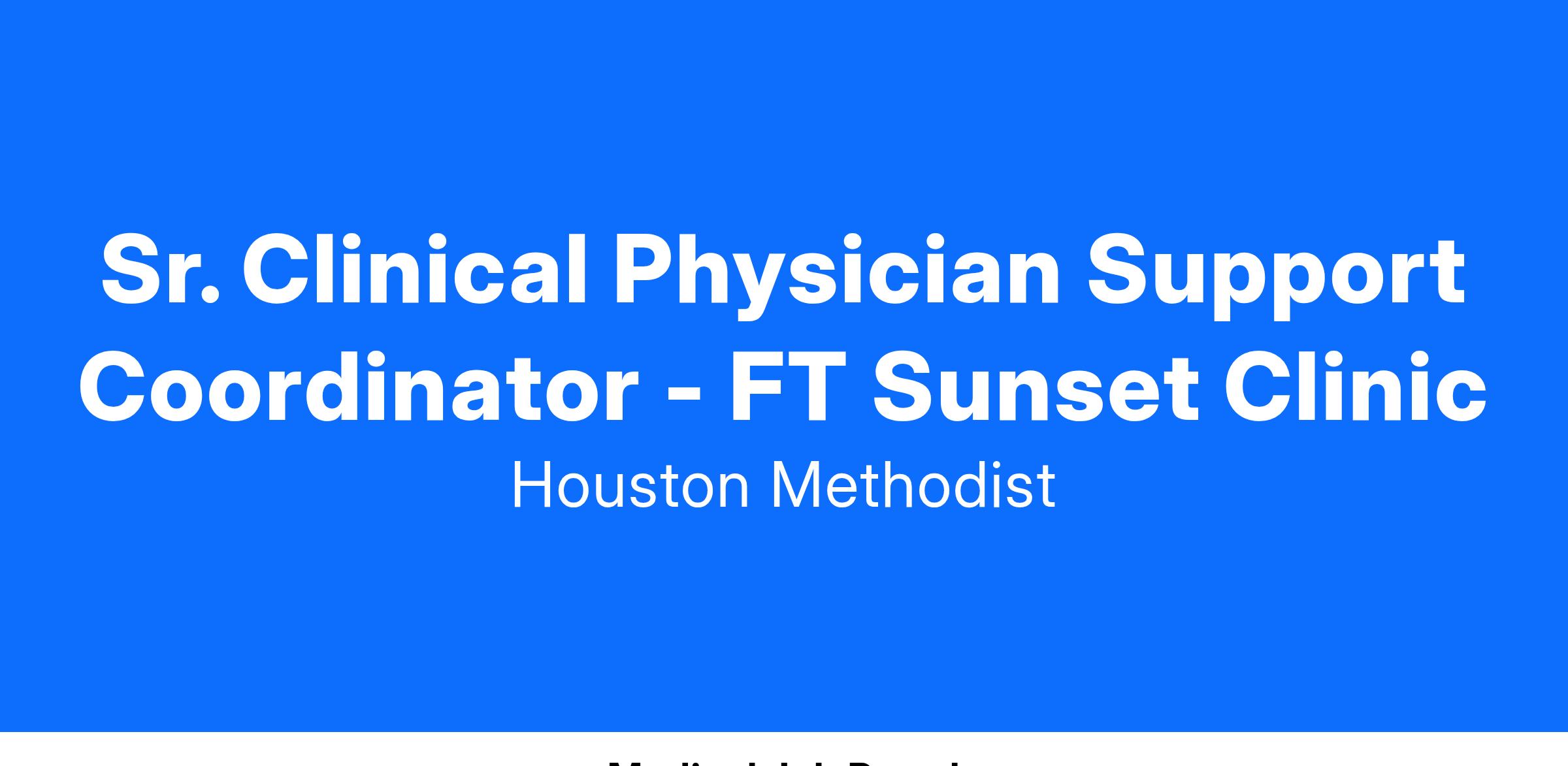 At Houston Methodist, the Senior Clinical Physician Support Coordinator position is responsible for leading the efforts for improved use, personalization and adoption of physician related technologies. This position provides direct support to providers and facilitates optimized use of the systems and serves as a liaison between Information Technology (IT) teams, physicians & physician related committees to resolve issues, enhance system functionality and increase benefit realization. The Senior Clinical Physician Support Coordinator position will lead and mentor others in this role where appropriate.