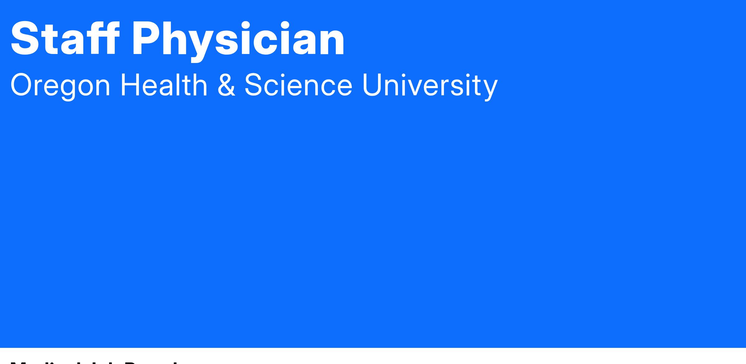 Oregon Health & Science University values a diverse and culturally competent workforce. We are proud of our commitment to being an equal opportunity, affirmative action organization that does not discriminate against applicants on the basis of any protected class status, including disability status and protected veteran status. Individuals with diverse backgrounds and those who promote diversity and a culture of inclusion are encouraged to apply. To request reasonable accommodation contact the Affirmative Action and Equal Opportunity Department at 503-494-5148 or aaeo@ohsu.edu.