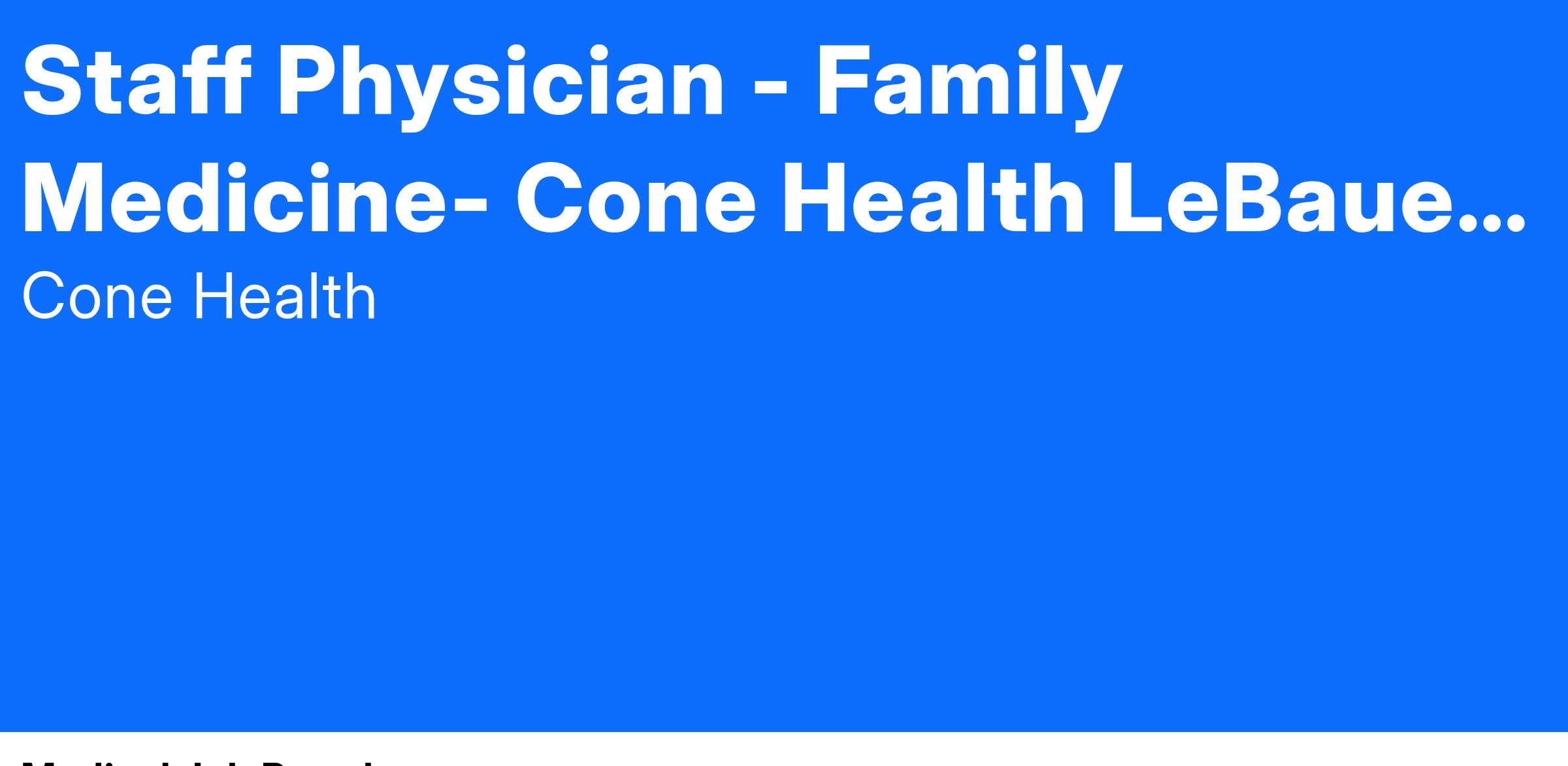 LeBauer at Grandover Village and Cone Health are adding another physician to grow their team. Greensboro is a flourishing city of more than 540,000 people, with a referral base of greater than 1 million, centrally located in the Piedmont region of NC, has over 90 miles of trails for hiking, biking, and walking, and is the #1 US metro area with the least amount of traffic. It’s home to an international airport and is a 2-hour drive to the mountains and a 3-hour drive from the beach.