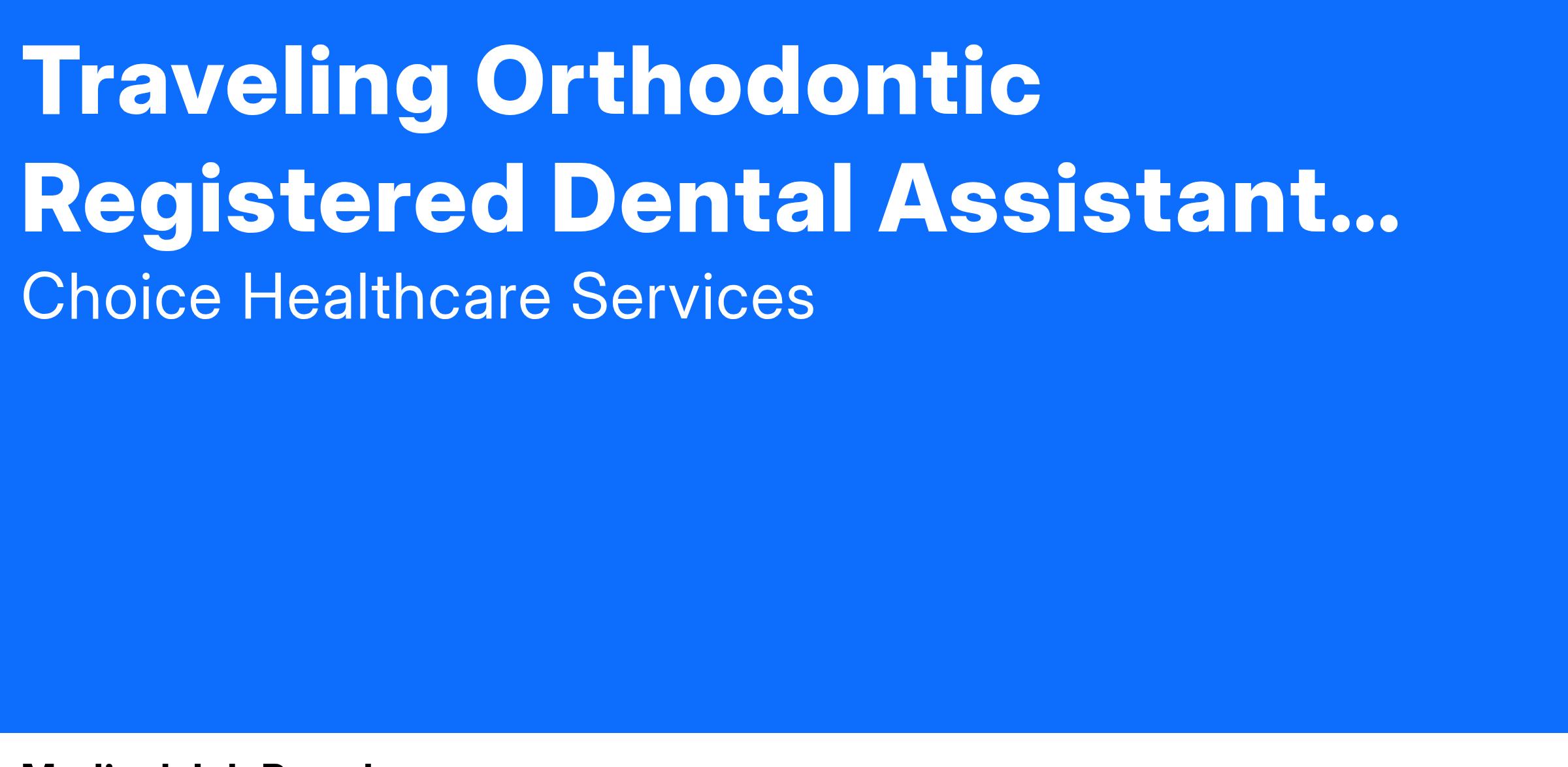 Summary: The Ortho ot (OA) Registered Dental Assistant supports Ortho dental care delivery by preparing treatment rooms, patients, instruments, and materials; passing instruments and materials; performing procedures in compliance with the Dental Practice Act.