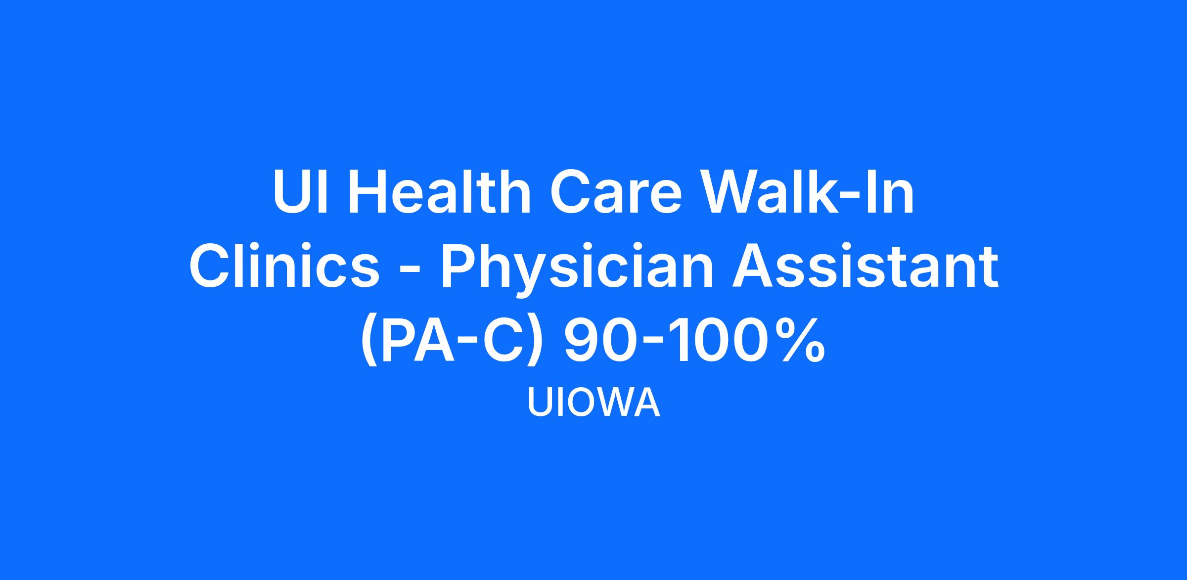 The University of Iowa Healthcare/Walk In Clinics is seeking a 100% (40 hours a week) Physician Assistant (PA) to primarily support our Iowa City/Corridor Walk-In Clinics (Urgent Care/QuickCare Clinics). Physician Assistant performs direct patient care, including diagnostic and therapeutic services. Within the Physician Assistant (PA)/Physician relationship, the PA will exercise autonomy in medical decision making and services provided. Our Physician Assistant's will exercise autonomy in medical decision making and services provided. The PA's will also assist in educating healthcare students, as they rotate through the respective departments and divisions and will assist in research endeavors as appropriate. UI Walk-in Clinics provide care to try to save our patients a trip to the emergency room. We’re open evenings, weekends, and even some holidays. Our clinics are responsible to assess a wide variety of patients from newborn to geriatric and ensures patient care standards are met and provides access to additional care options not normally found at your traditional walk-in clinic, including X-rays, IV fluids, and stitches. This position is part of a dynamic and fast paced environment, rich with opportunities for learning and growth. We utilize a multidisciplinary approach to patient care that encourages teamwork between multiple disciplinary team to provide the most comprehensive care to our patients. We have multiple clinics throughout the corridor area, as well as two locations in the Quad Cities, allowing our patients to find a location that is convenient to them. This position reports to the Medical Director within the UI Healthcare Walk In Clinics and Lead APP within UI Community Clinics.