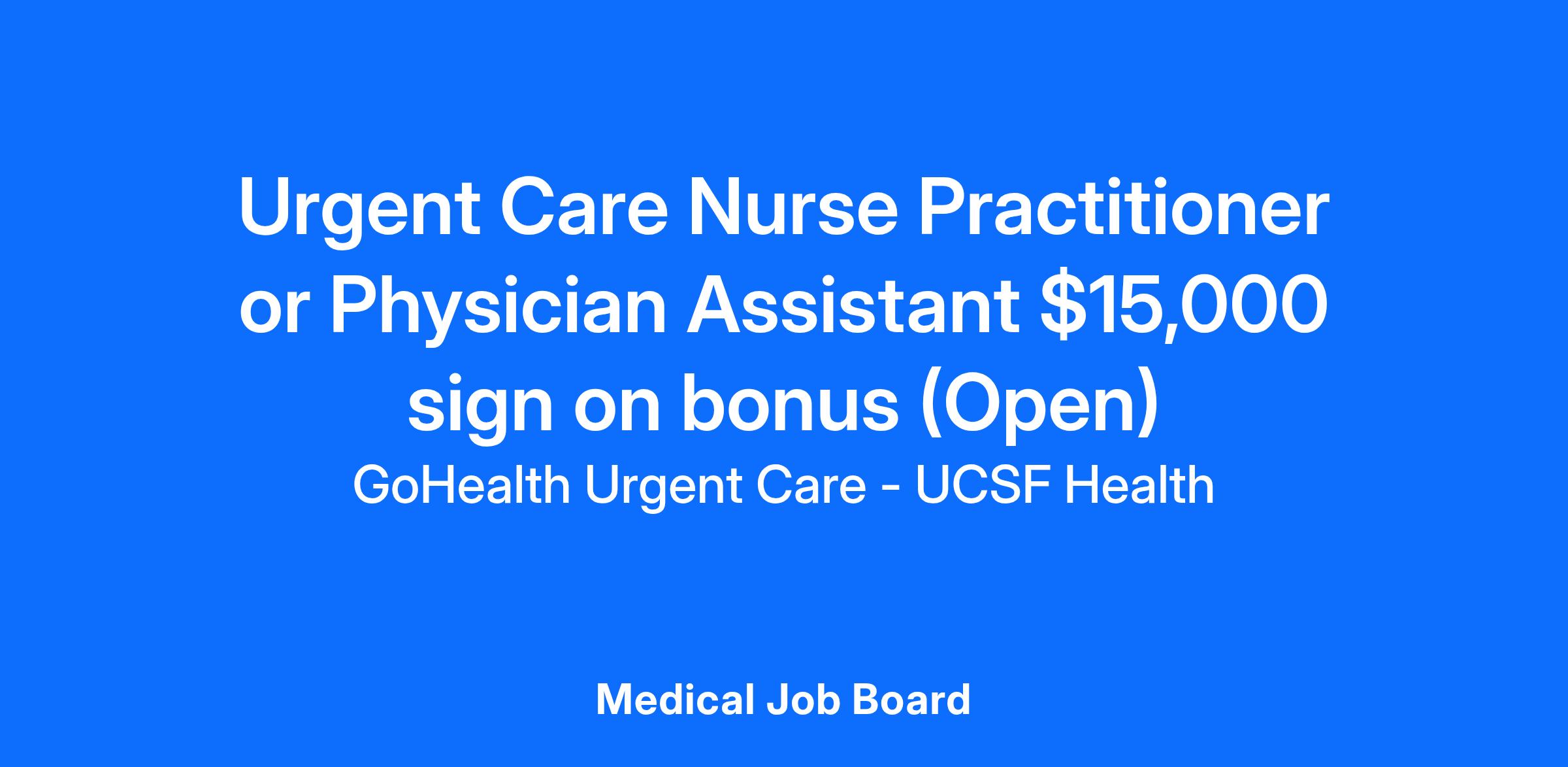 Work experience in an Urgent Care or Emergency Room setting preferred