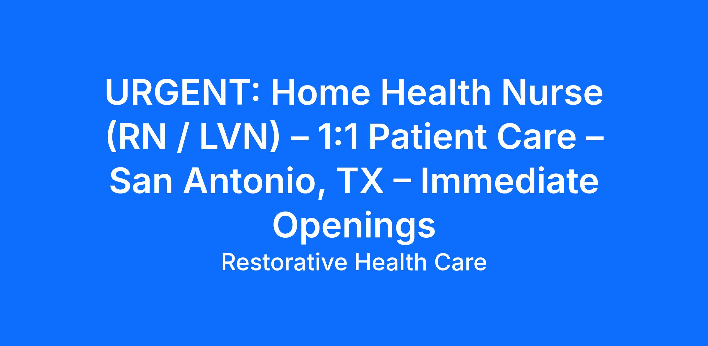 Looking for a more focused and meaningful nursing experience? Join Restorative Health Care and provide 1:1 care in a calm home settingβno patient ratios, just quality care and real connections.