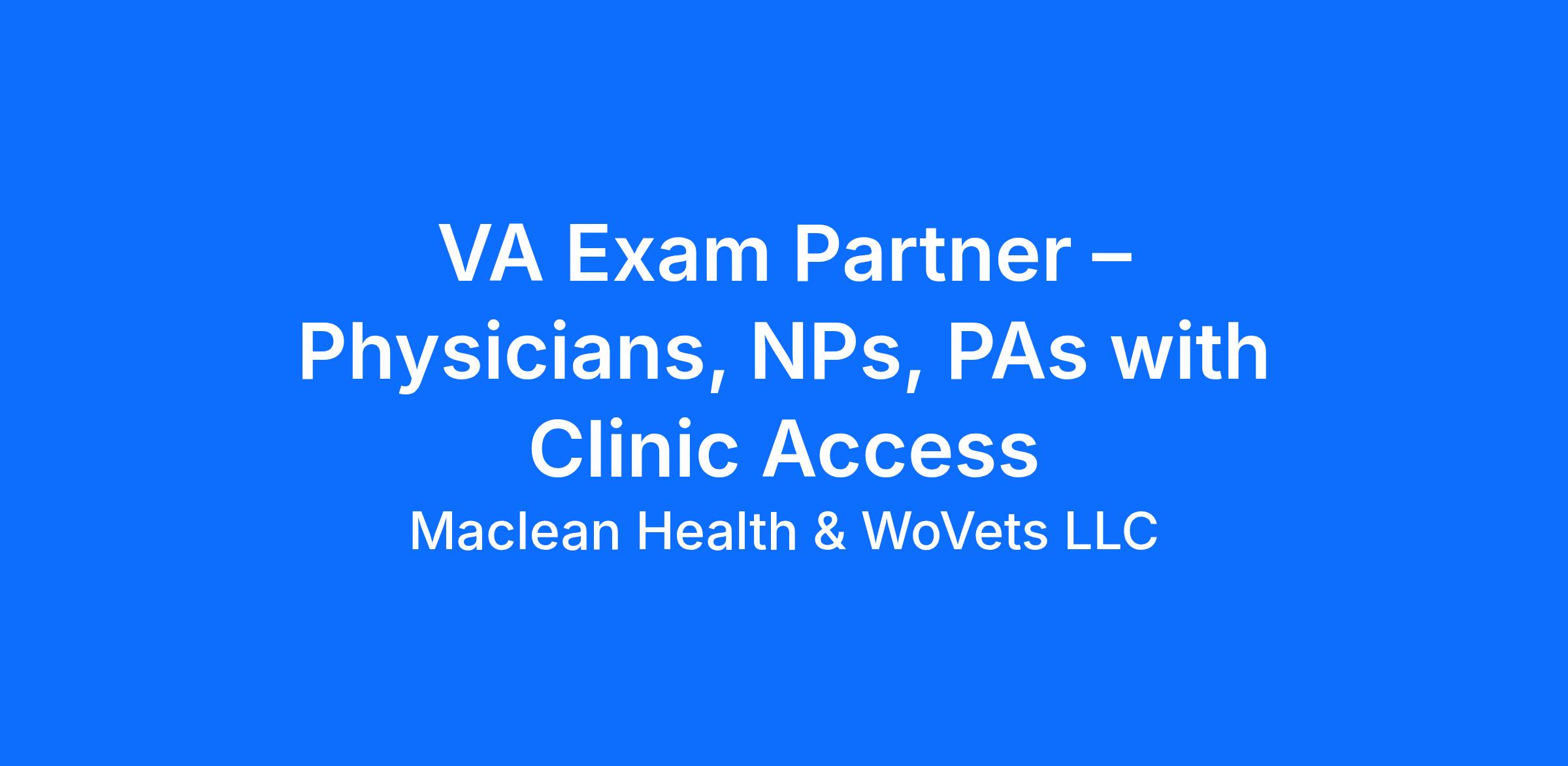 Wellbits LLC partners with the Department of Veterans Affairs to provide disability exams. We’re expanding our network of independent medical professionals to serve veterans in their local communities. If you own or have access to a clinic and want to make a meaningful impact, we’d love to hear from you.