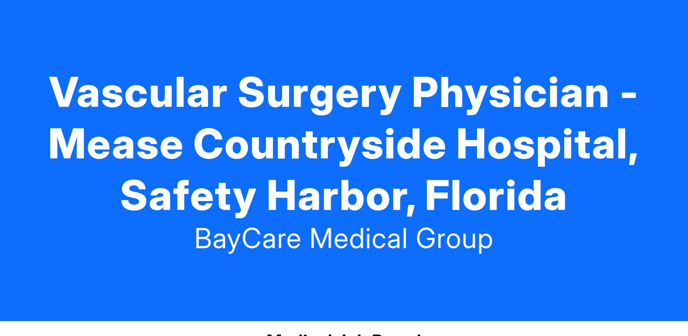 If you are a passionate and skilled Vascular Surgeon seeking an exceptional opportunity to grow your career in a supportive and thriving environment, we encourage you to apply. Join BayCare Medical Group and contribute to delivering world-class vascular care to our patients.