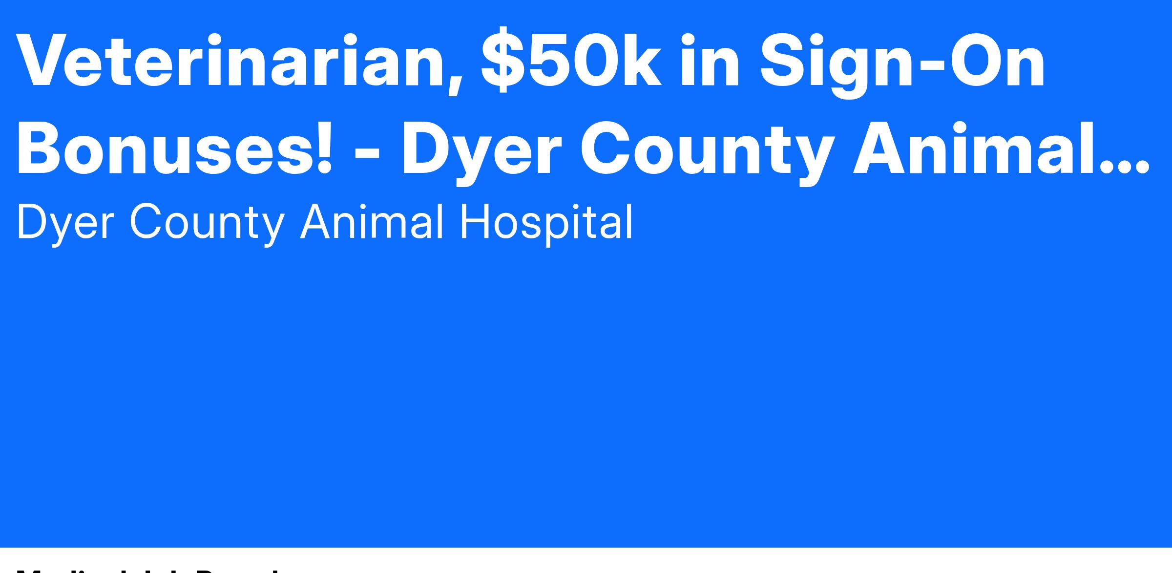 We are currently a 3-doctor practice, and are very excited about the addition of another veterinarian to our team! So excited that we are offering up to $50k in Sign On Bonuses for the right DVM!