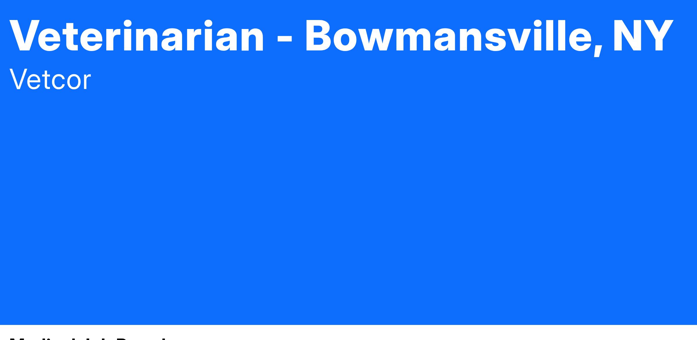 Apply Now if you are looking for a rewarding career in a supportive environment where you can make a real difference, we would love to hear from you! If you wish to connect with a Recruiter directly, please reach out to Vanessa at vsanchez@vetcor.com