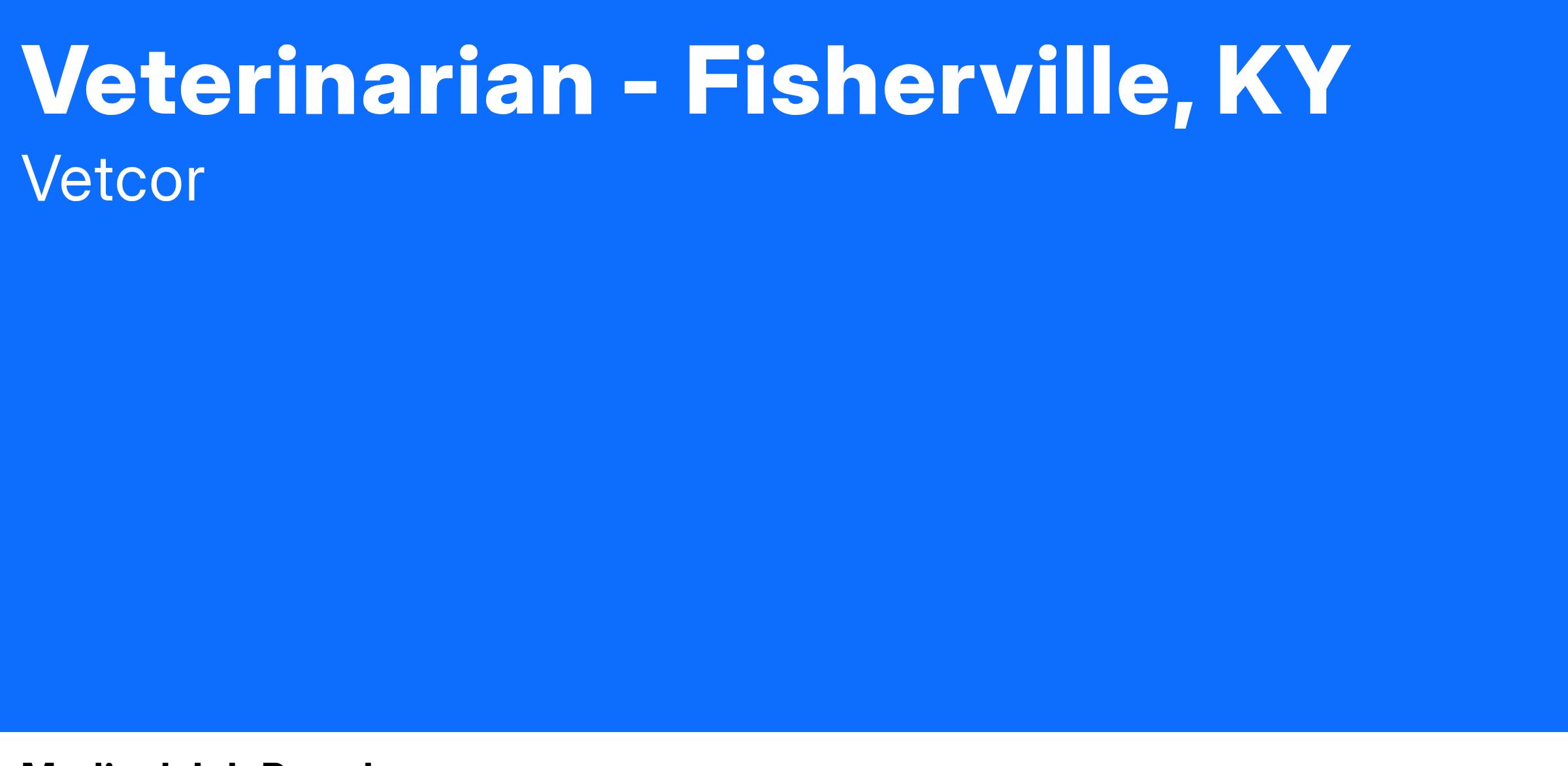 At Elk Creek Animal Hospital, we're looking for a compassionate and skilled veterinarian to join our team. Located in Fisherville, KY, just outside of Louisville, we are part of a multi-location, full-service veterinary group that provides exceptional care for dogs, cats, and exotic pets. Our mission is to deliver excellent customer service and top-notch veterinary care at affordable prices.