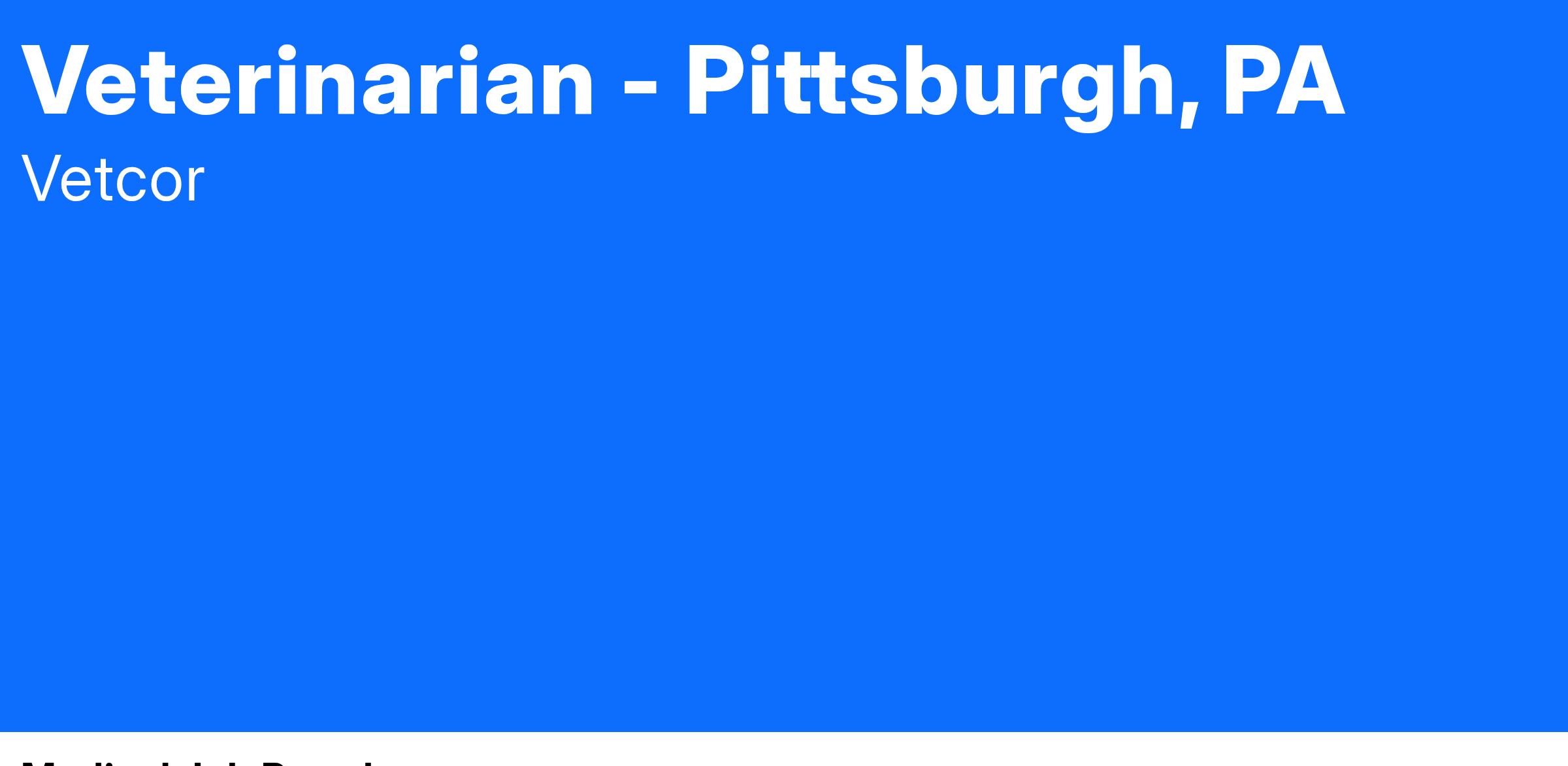 Always Compassionate Veterinary Care in Pittsburgh, PA is looking for a veterinarian to join our 4-doctor practice. We are a canine and feline AAHA accredited general practice that offers a variety of medical, preventative, and surgical services to our clients. We encourage a team-oriented, compassionate, and caring environment where we treat our client’s pets as if they were our own.
