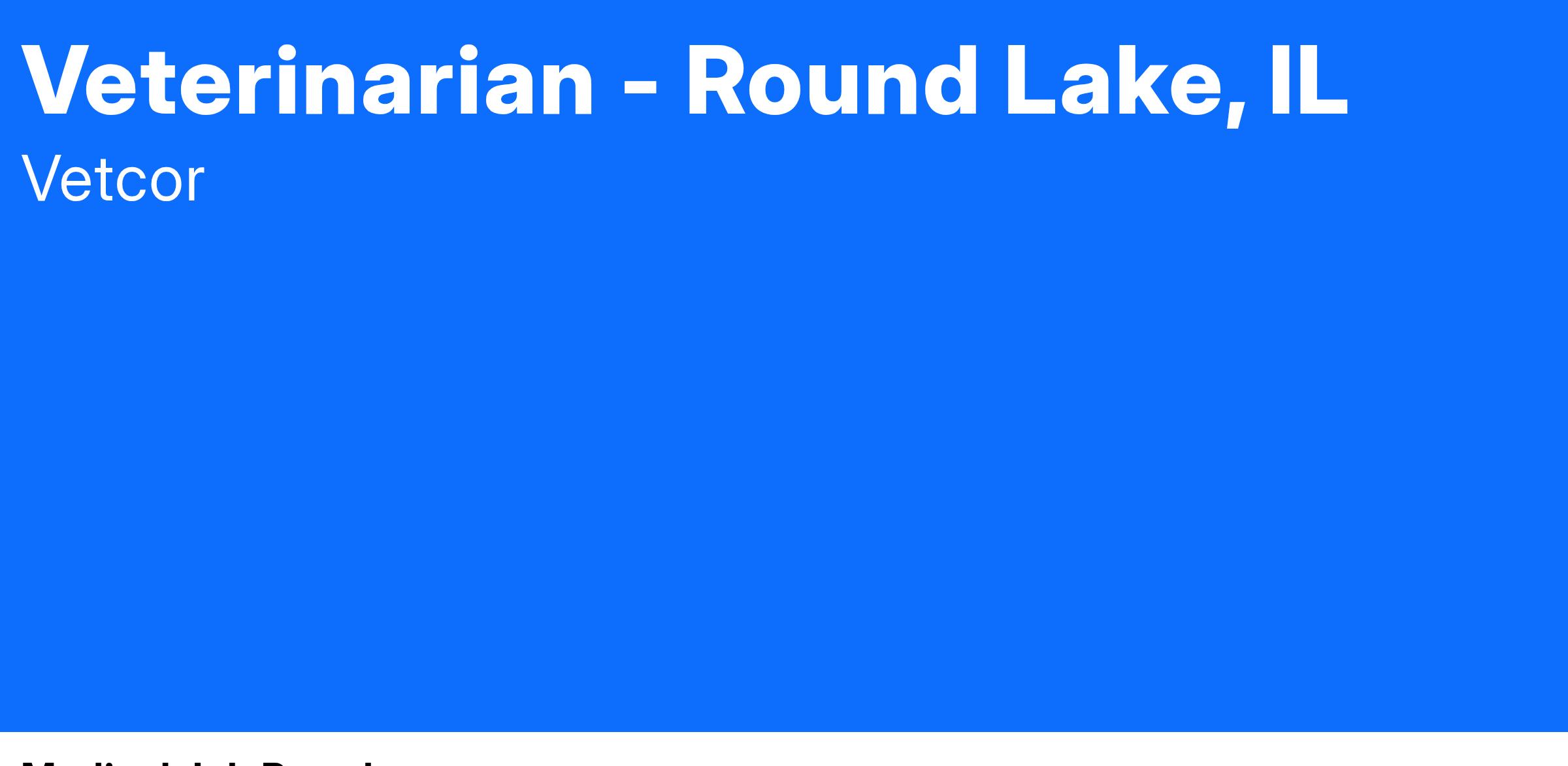 At Round Lake Animal Hospital, we offer more than just a job—we provide an environment where veterinarians can thrive. You'll enjoy a flexible schedule with no on-call or after-hours responsibilities, all within a collaborative, fast-paced team that supports both personal and professional growth.